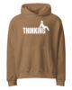 Overthinking isn’t just a word — it’s a whole state. This overthinking hoodie turns that feeling into a clean visual mechanism you can understand in one second: the word THINKING becomes the base, and a small figure sits over it. No long sentence. No dramatic quote. Just a smart visual pun that says everything.